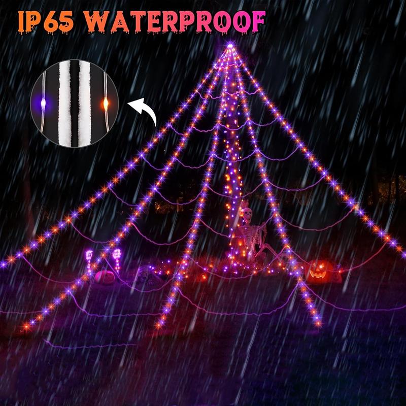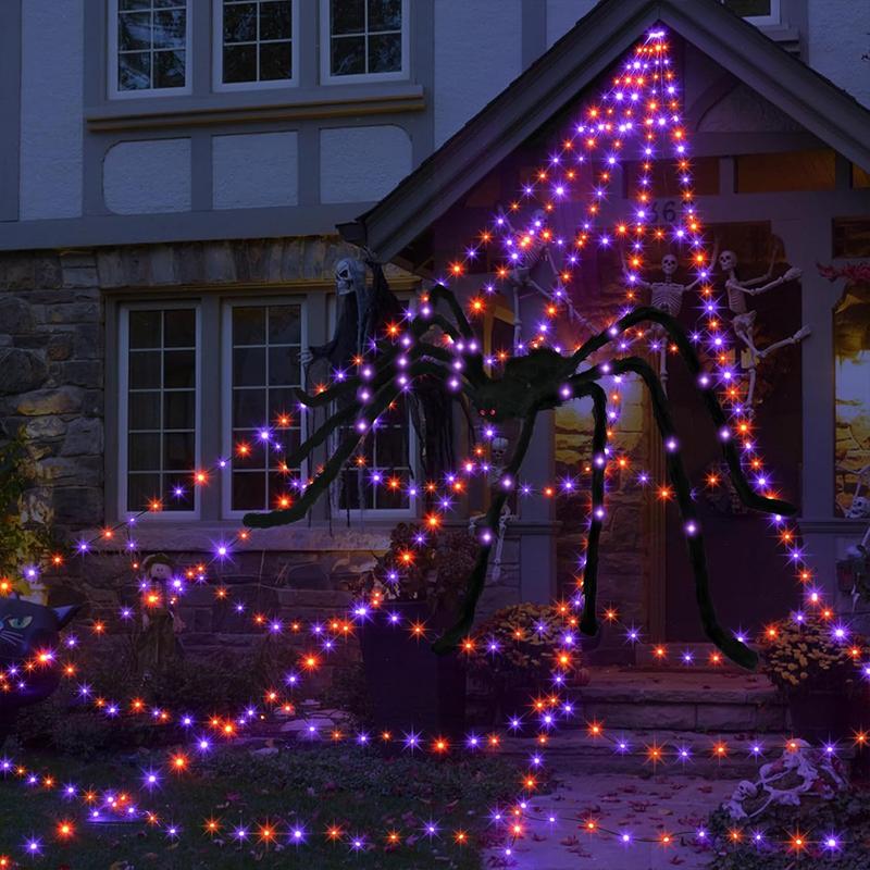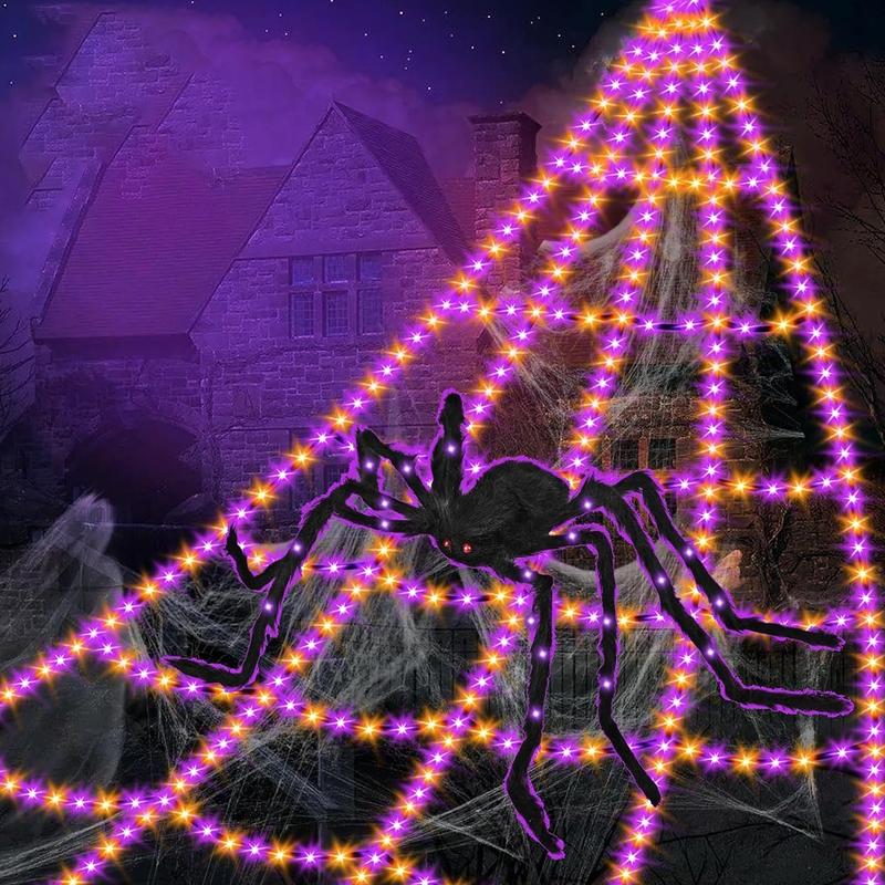 Create the ultimate Halloween atmosphere with this intricate spider web light, perfect for haunted houses, parties, and spooky yard displays.